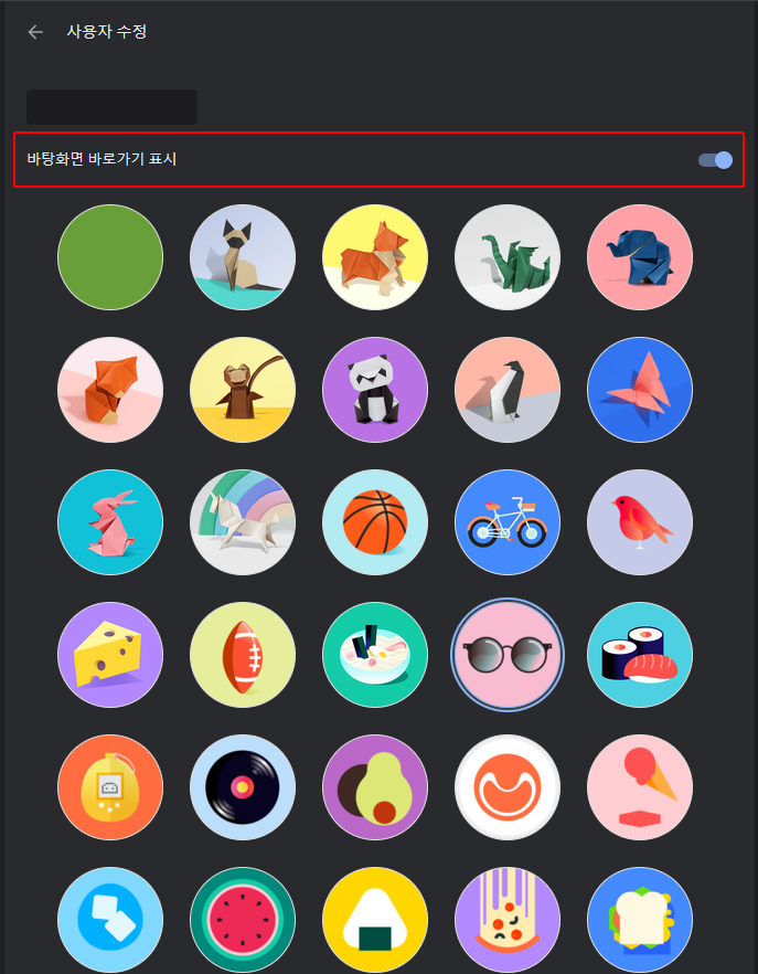 4. 상단 이미지와 같이 '사용자 수정' 화면이 뜬다면 '바탕화면 바로가기 표시'를 우측 버튼을 눌러 활성화시켜준다.