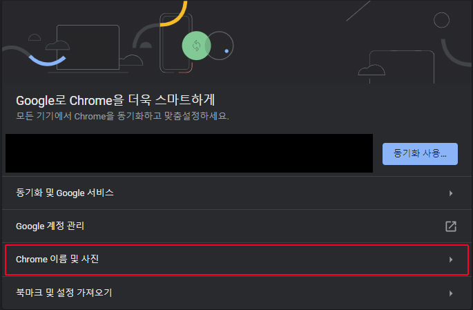 3. 화면 중단의 'Chrome 이름 및 사진'란을 누른다.